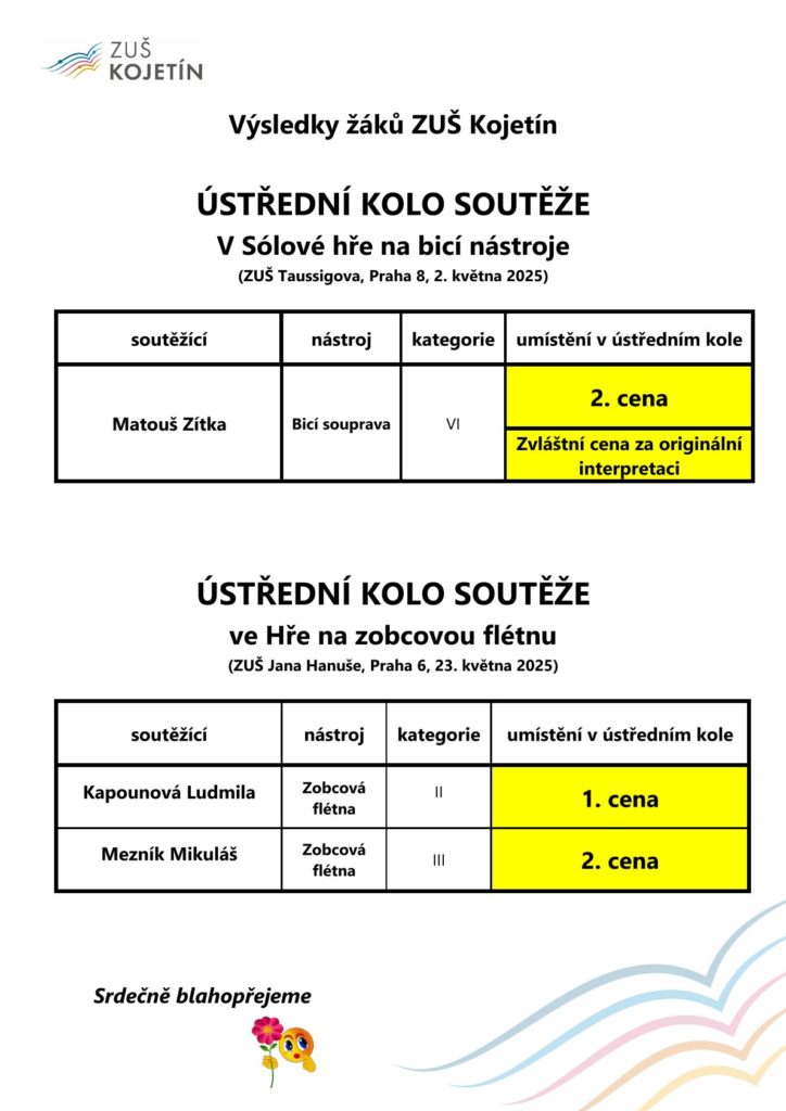Výsledky ústředních kol soutěží žáků ZUŠ