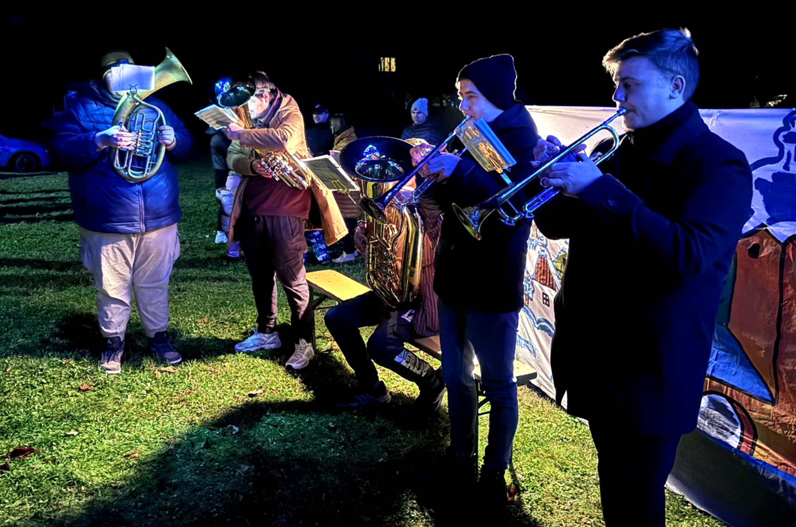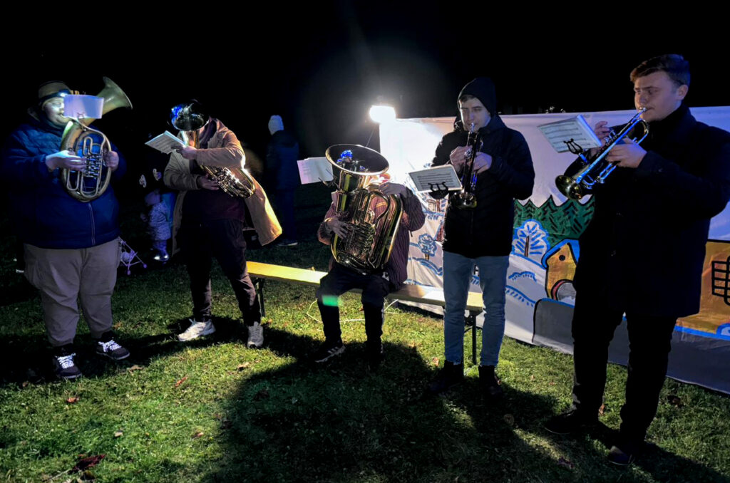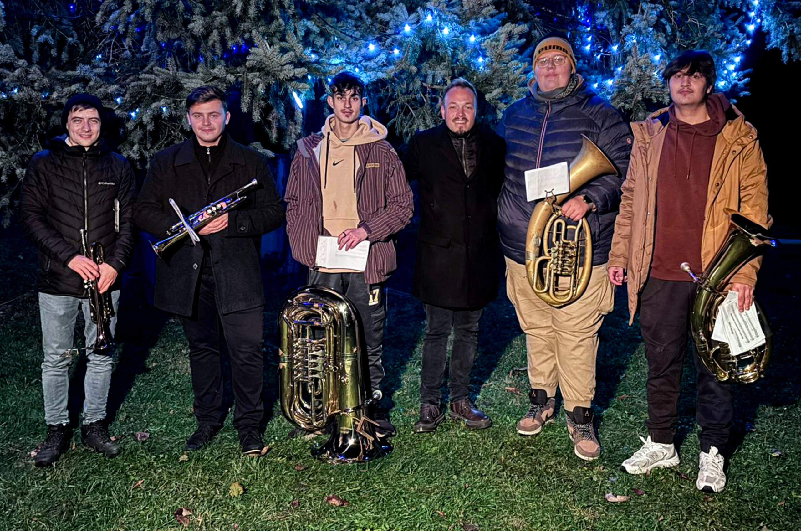 Vystoupení žesťového kvintetu při rozsvěcování vánočního stromu v Bezměrově